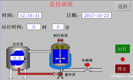 监控模块实时监控制冷机组的温度数据、反应釜的温度数据、系统运行的时间、循环泵的工作状态等重要数据。